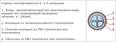 Силовой изоляционный кабель изготовленный из сшитого полиэтилена и рассчитанный на 1кВ напряжения.